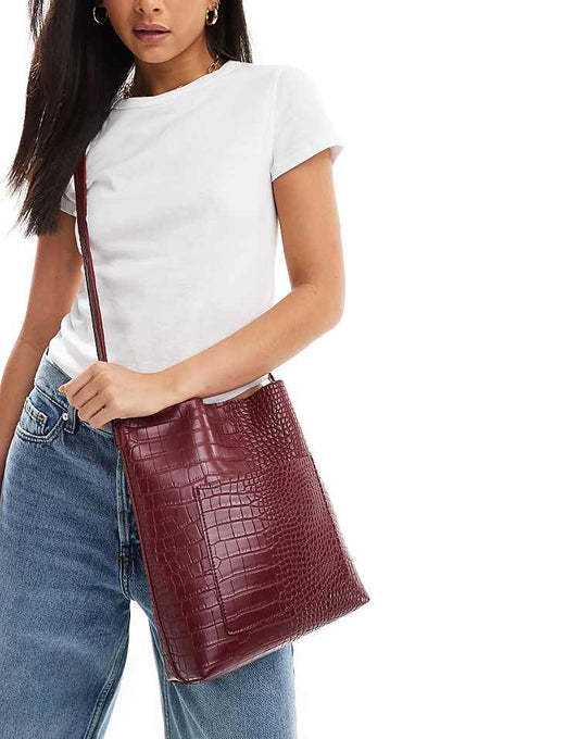 Glamorous croc crossbody bag in burgundy