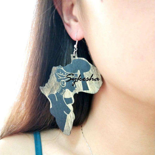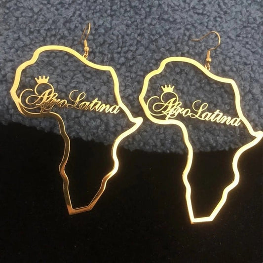 Anniyo African Map Custom Name For Women Stainless Steel Personalized Big Earrings Exaggerate Africa Traditional Ethnic Jewelry