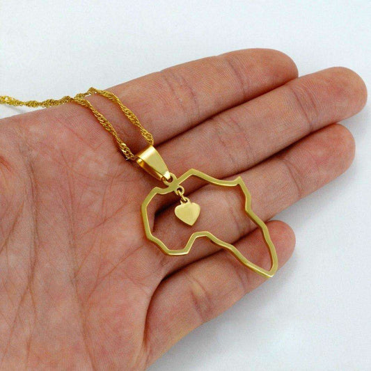 Africa Congo Algeria Map Pendant Necklace For Women Men Gold Color Copper Chain Necklaces Hiphop Style