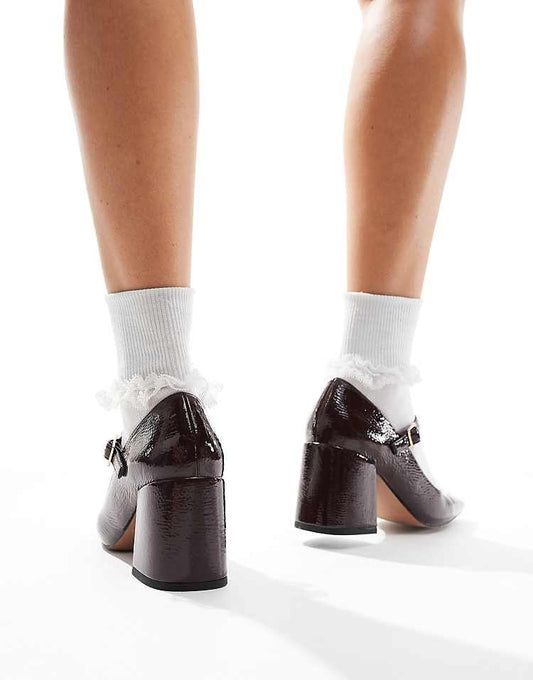Selene mary jane mid block heeled shoes in burgundy