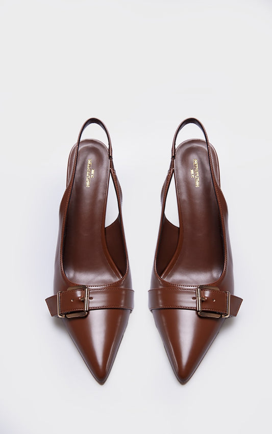 Brown PU Wide Fit Buckle Detail Stiletto High Heel Sling Back Court Heels