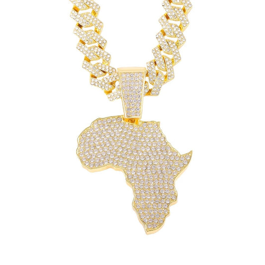Africa Map Necklace Rhinestone Crystal Gold/Silver