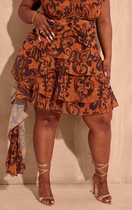 Plus Orange Ruffle Tiered Detail Mini Skirt