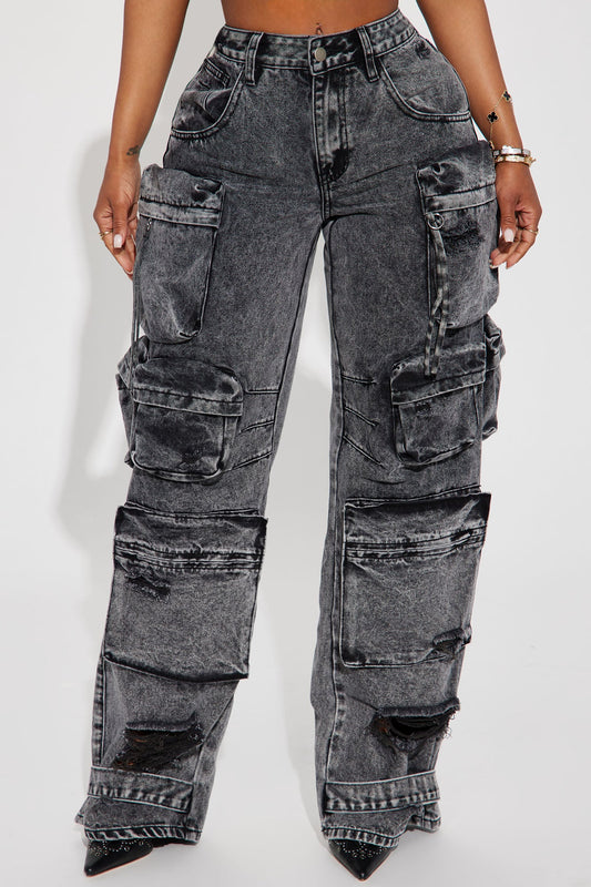 Billie Low Slung Cargo Jeans - Acid Wash Black