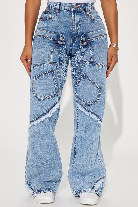 Nikki Non Stretch Acid Wash Cargo Jeans - Medium Wash