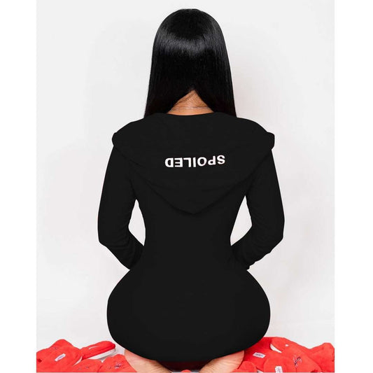 • Velvet Ruched Bodycon Hoodies Jumpsuit