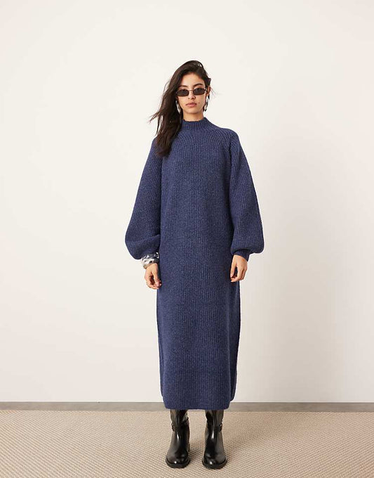 YAS high neck knitted jumper midi dress in black with contrast stitch