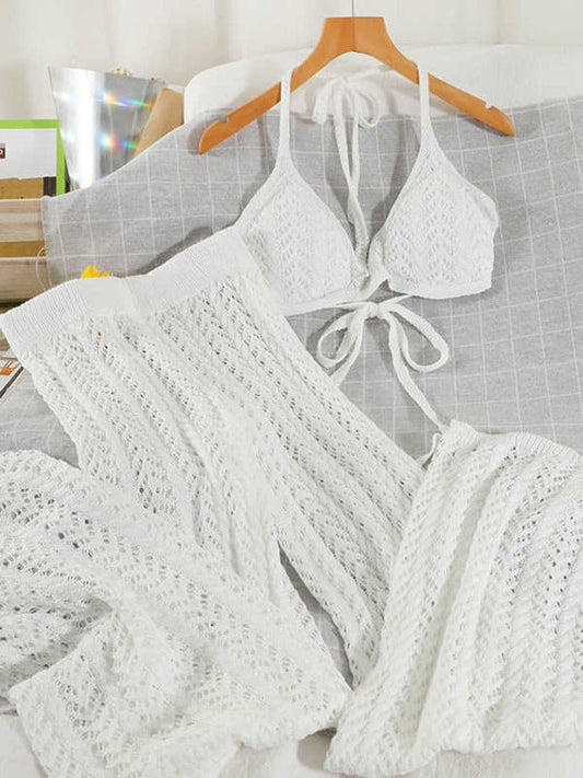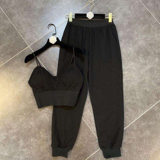 DEAT Femmes Tricot Écharpe Sans Nackless Sexy Soutien-Gorge Pantalon Long Nouveautés Ensemble Deux Pièces Tempérament Mode Printemps Été 2022 11D846