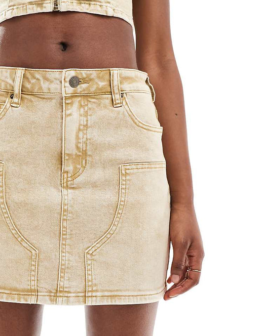 Guess Originals co-ord aged denim mini skirt in overdyed beige