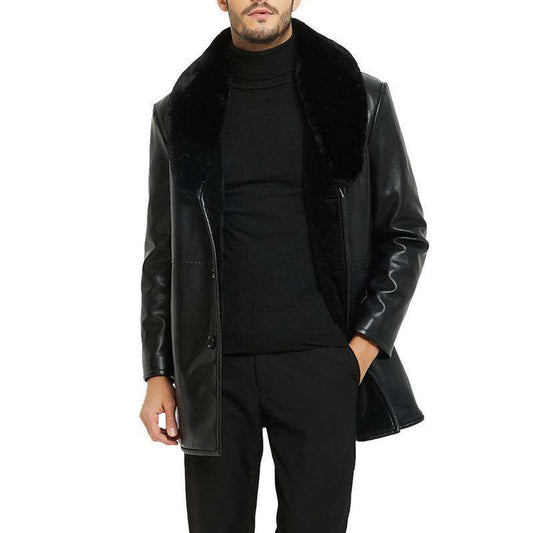 Veste en cuir PU pour homme, col en fausse fourrure, veste moto homme, vêtements épais et chauds, manteau classique en similicuir