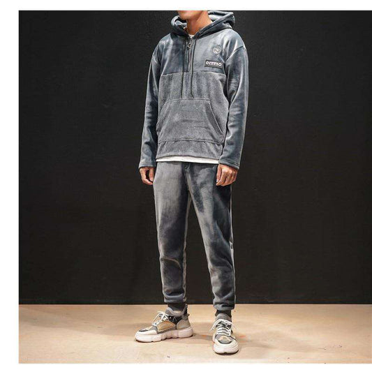 Ensemble de sport tendance pour homme, survêtement d'hiver en velours épais, sweat à capuche à manches longues, pantalon de jogging, costume d'entraînement, grande taille M-5XL