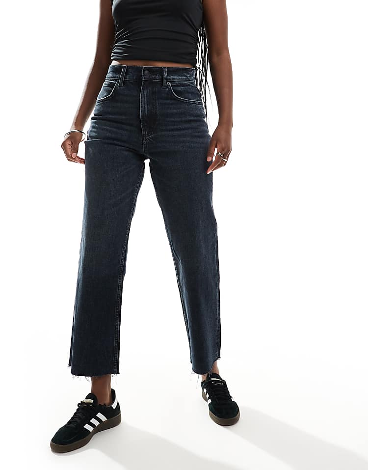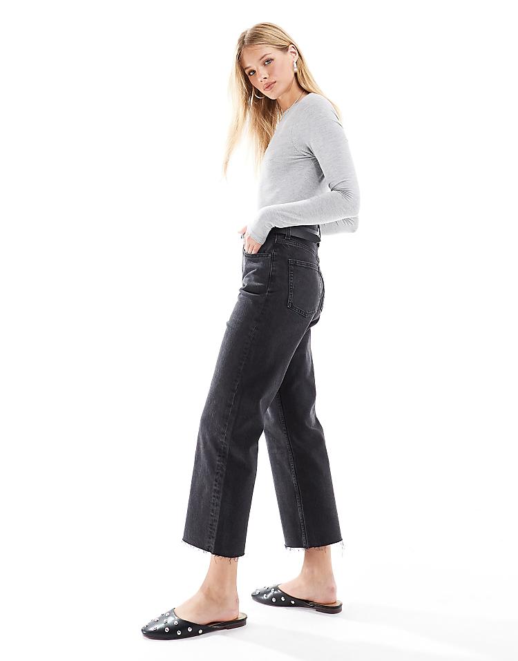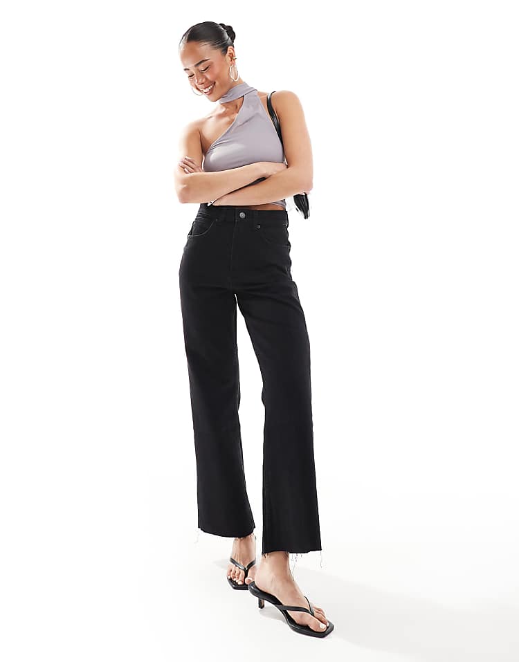 DESIGN cropped comfort stretch straight leg jean in clean black