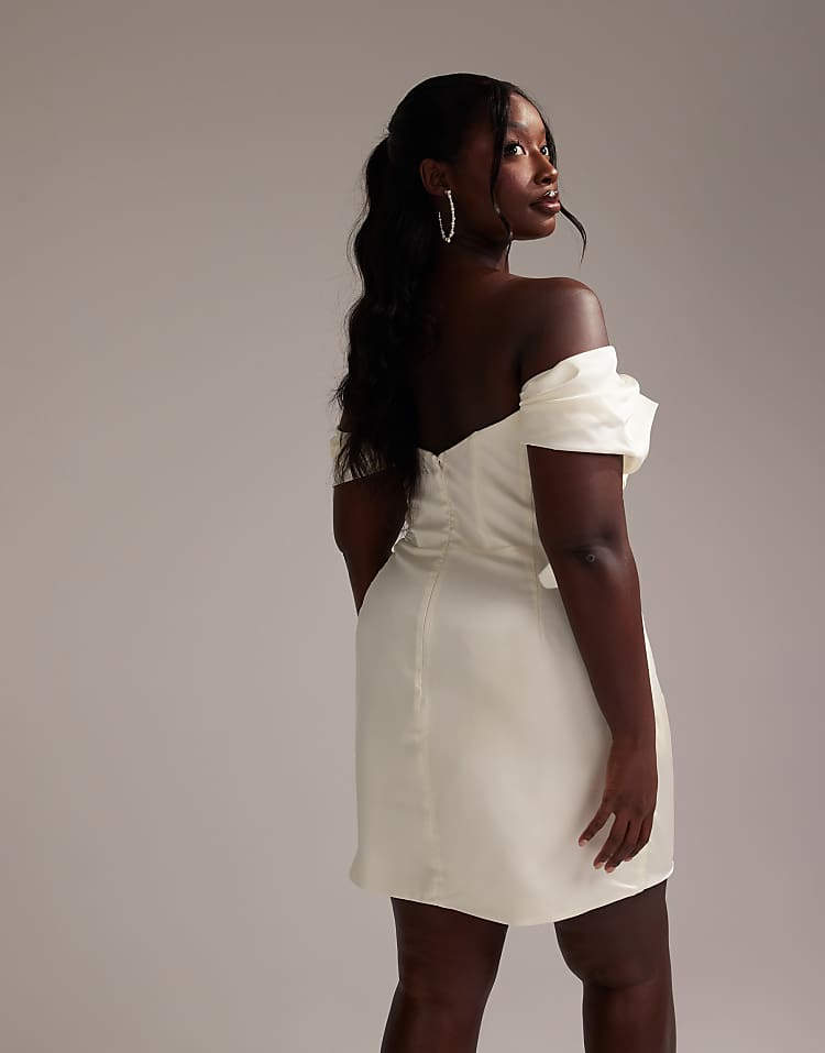 Curve satin mini dress in ivory