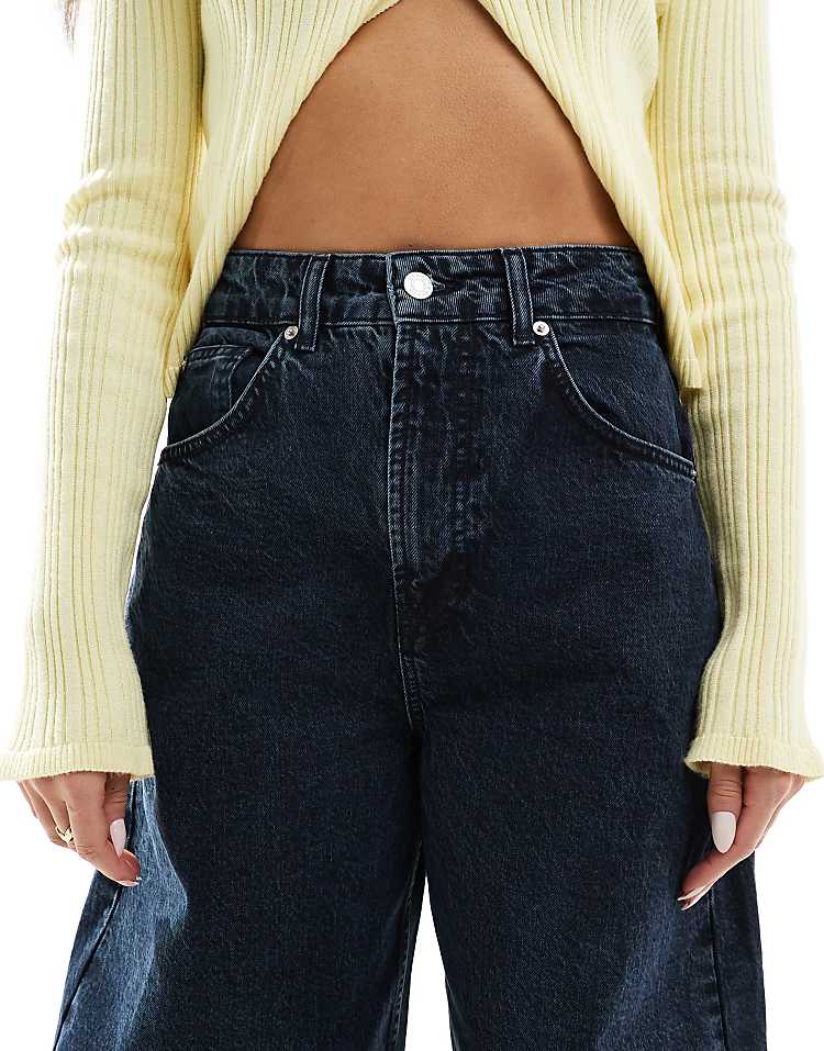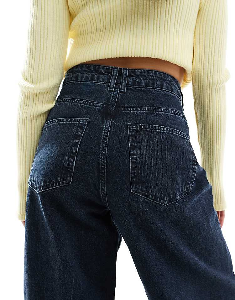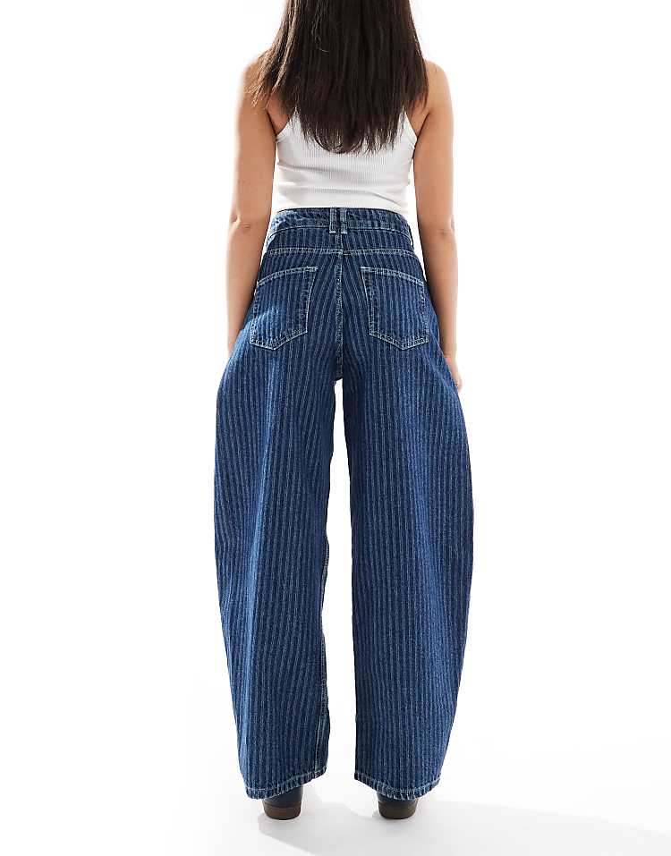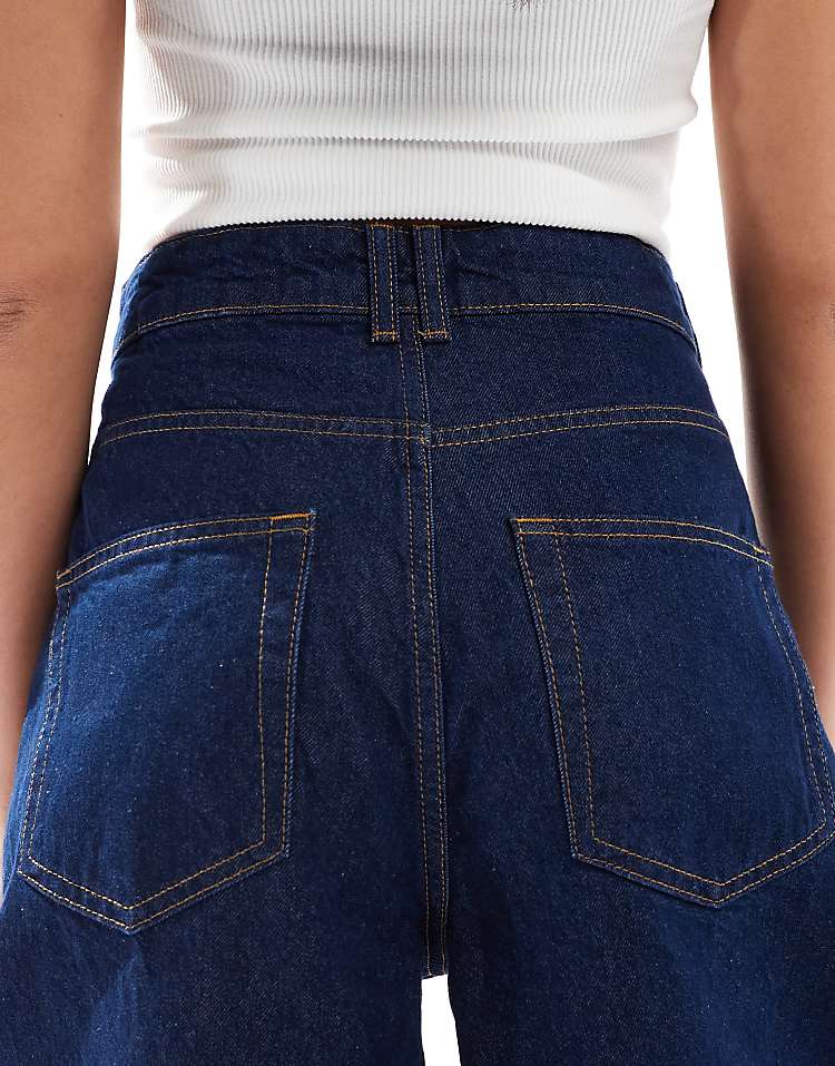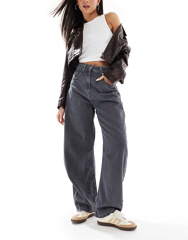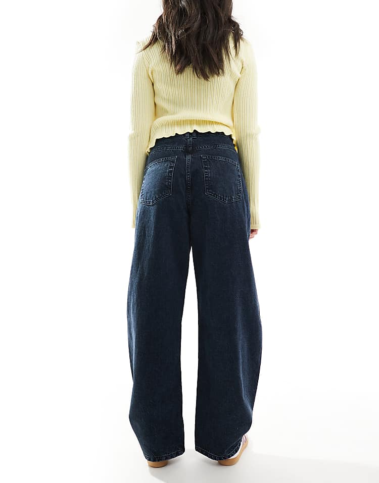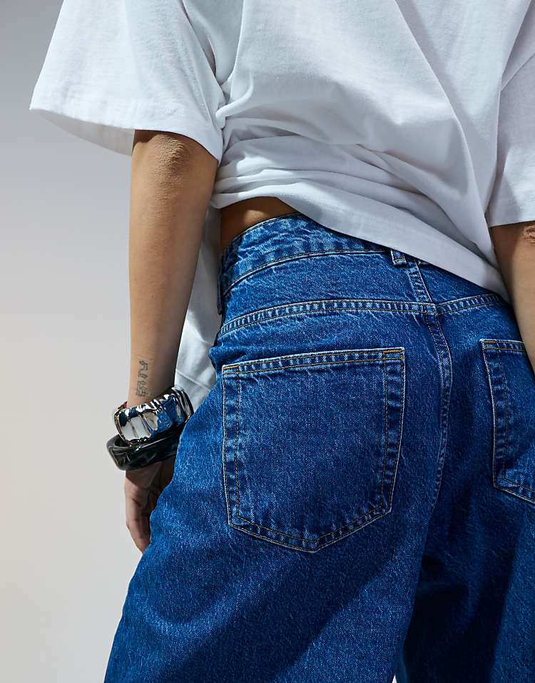 DESIGN high waisted barrel leg jeans in light mid blue