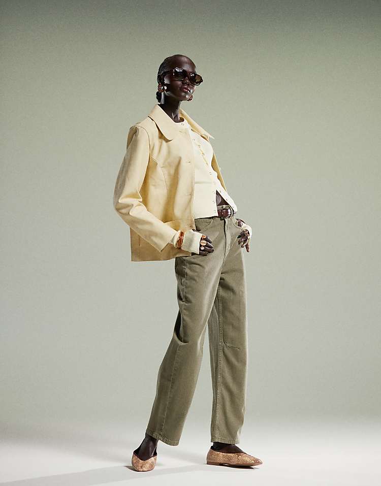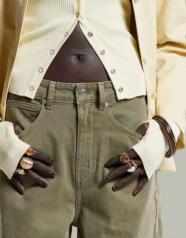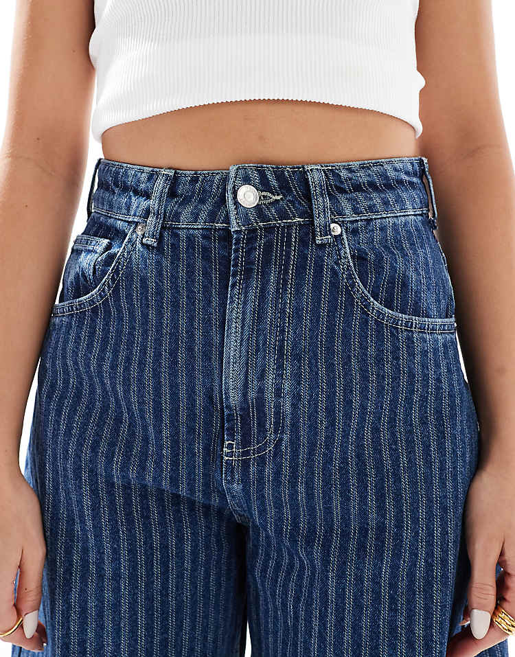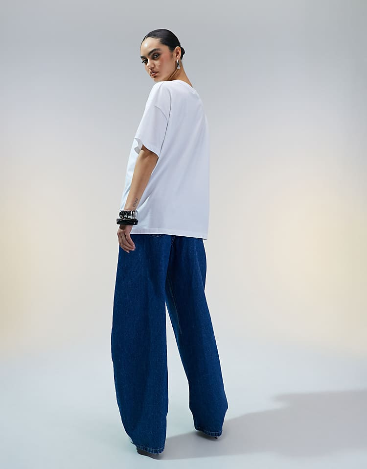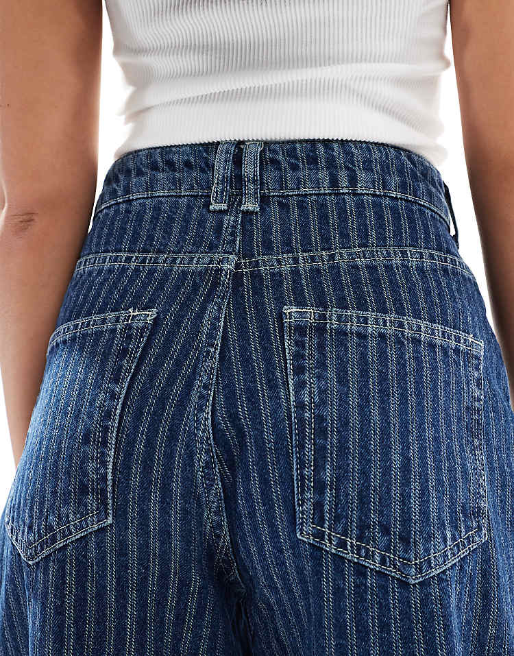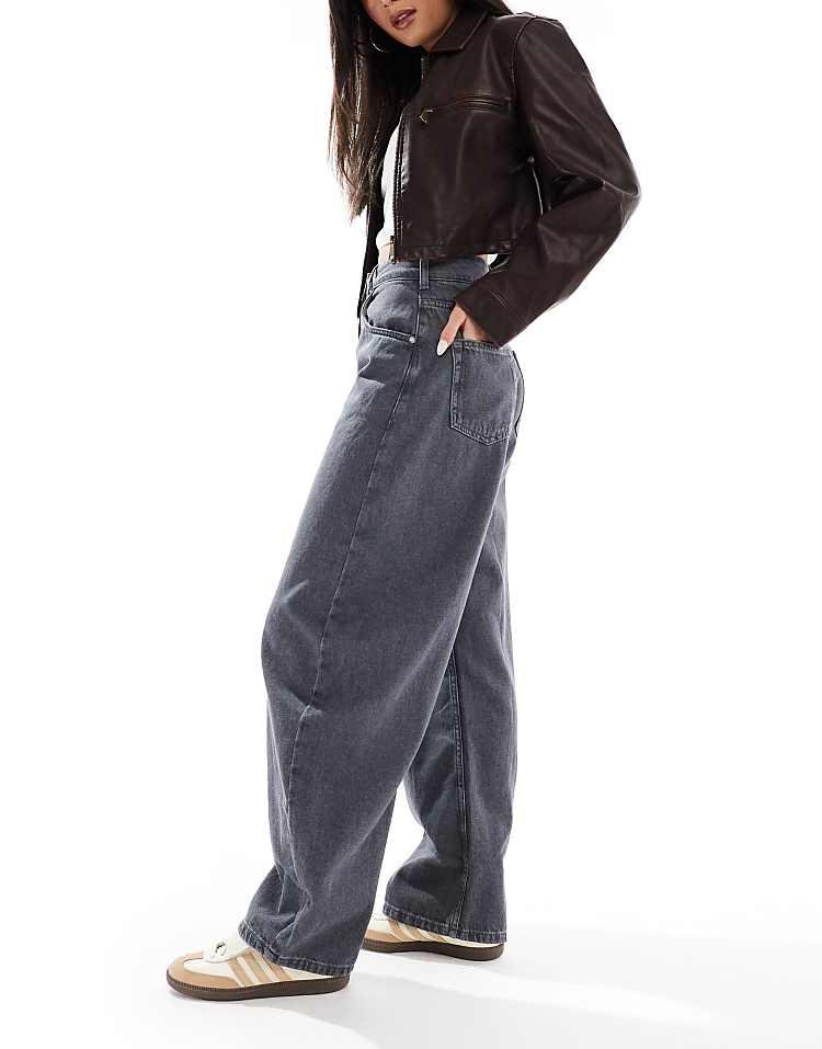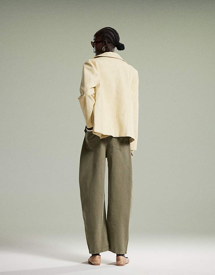 DESIGN high waisted barrel leg jeans in light mid blue