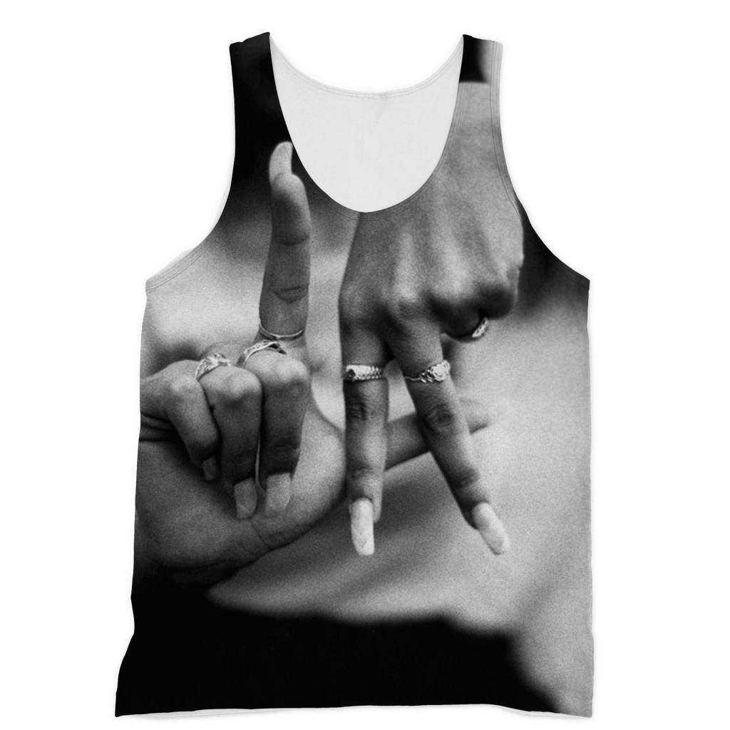Get ready for summer with this lightweight all-over printed tank top. Sublimation transfer on soft-touch fabric. 100% polyester. As with all sublimation printed garments, please expect some variation in artwork placement, as well as light creasing in the seams.